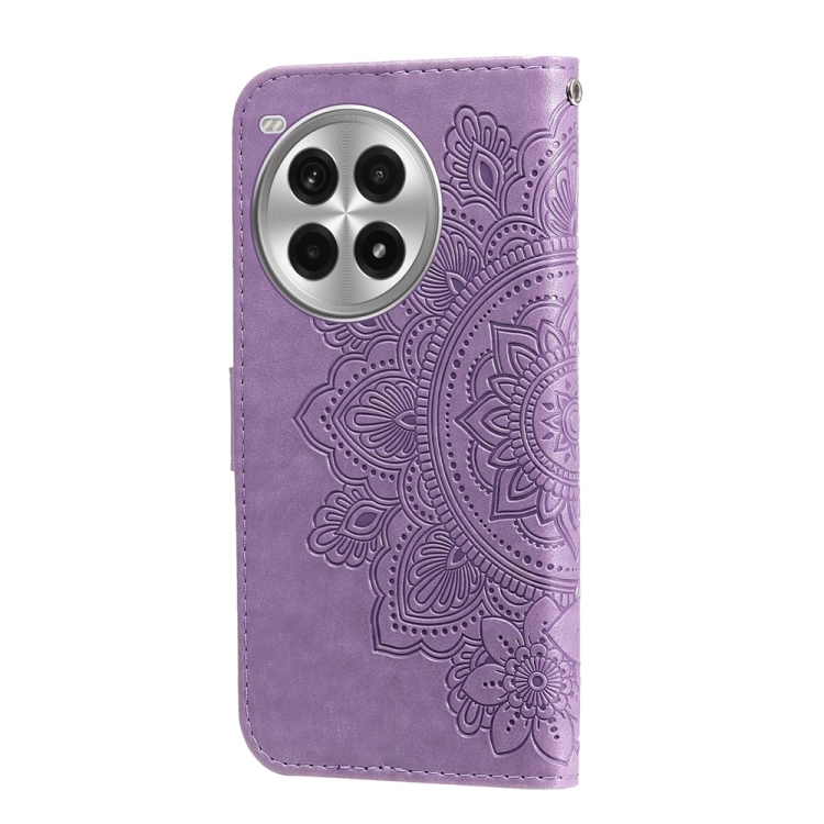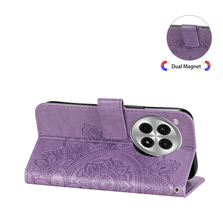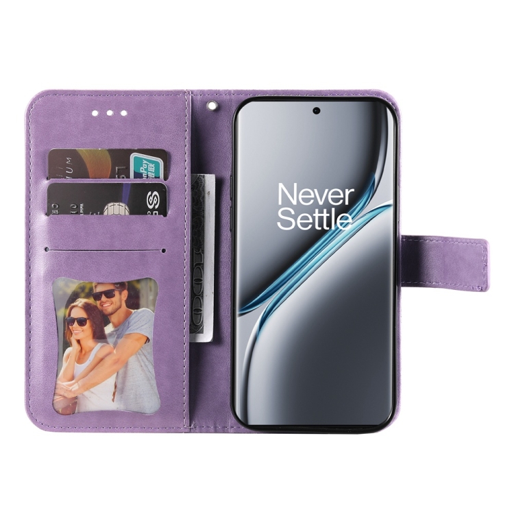 Funda de Cuero con Relieve Flores Siete Pétalos para OnePlus Ace 3 Pro (Morado Claro)