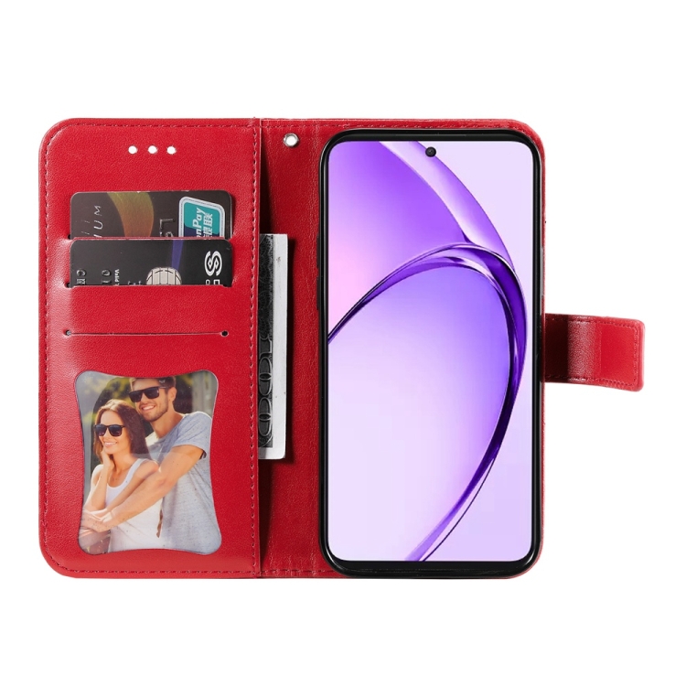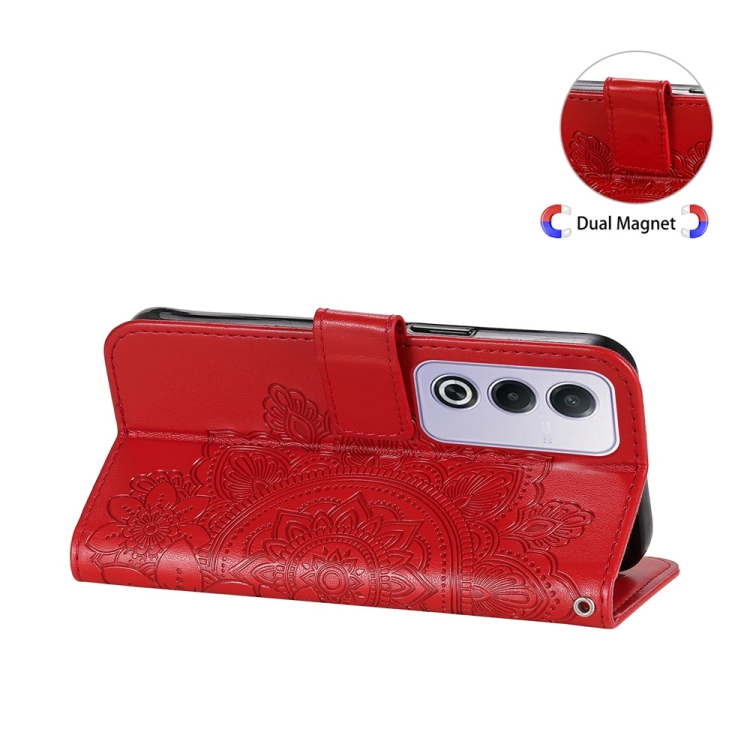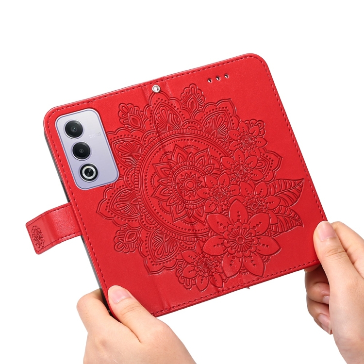 Funda de Cuero con Relieve de Flores de Siete Pétalos para Oppo A3 Pro 5G Global/India (Rojo)