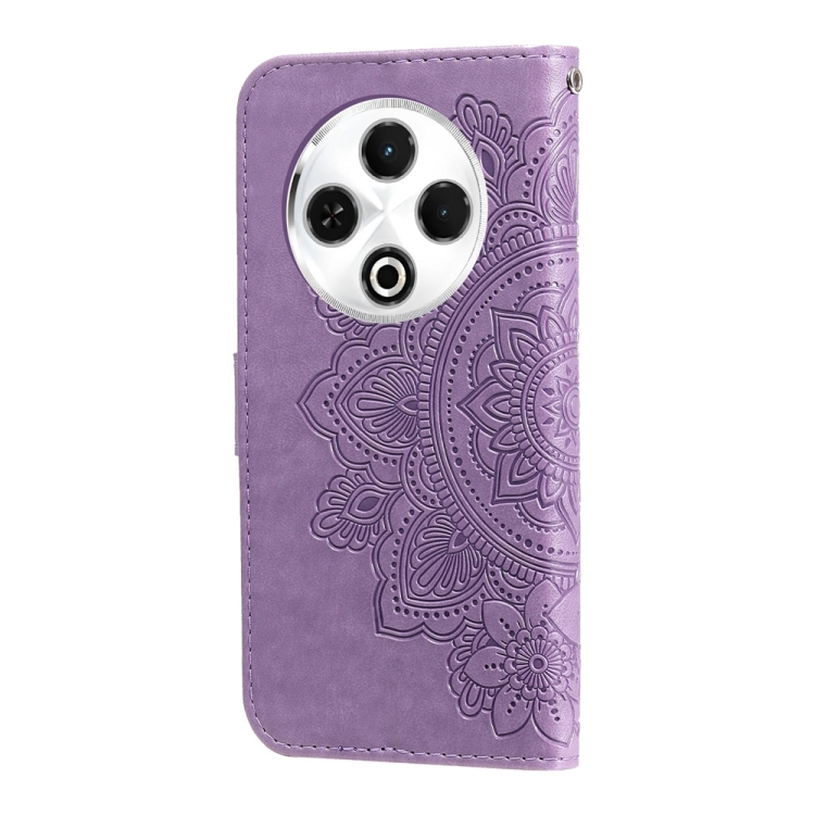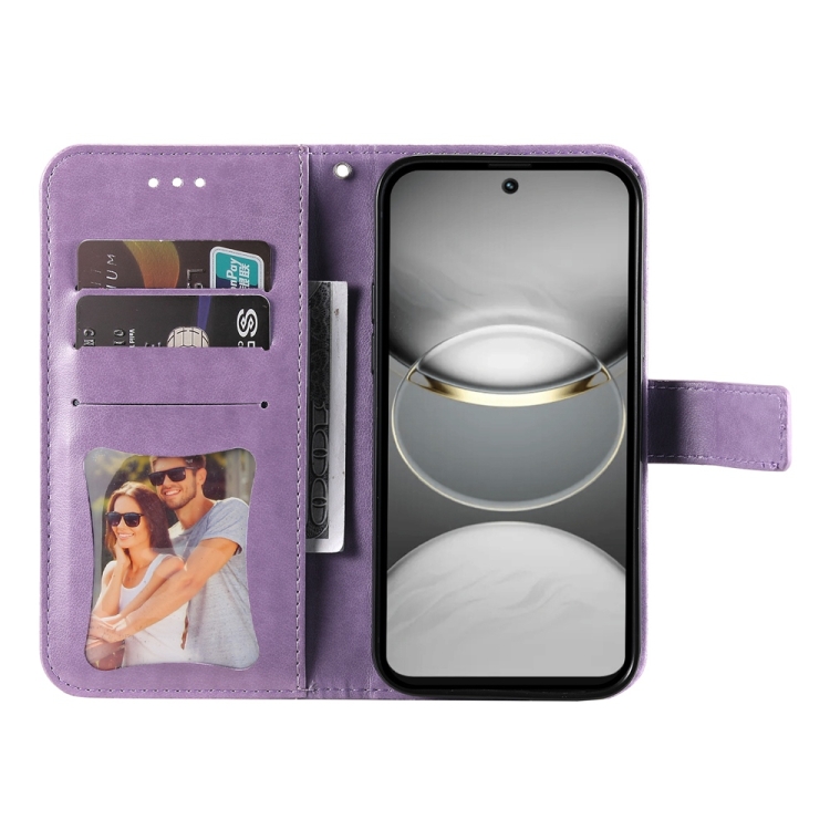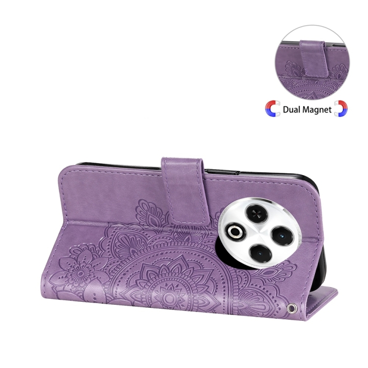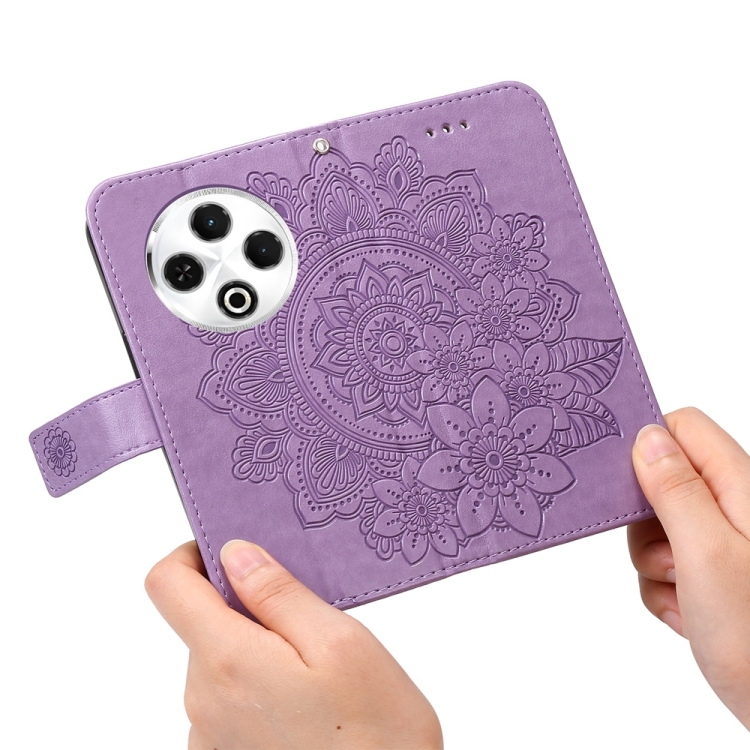 Funda de Cuero con Relieve de Flores de Siete Pétalos para Tecno Spark 30 4G (Morado Claro)