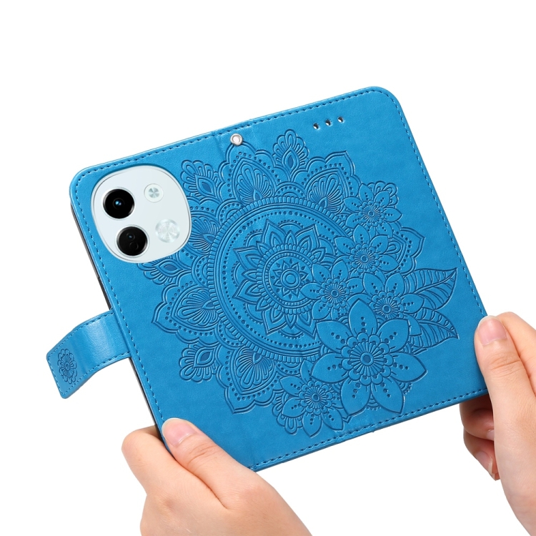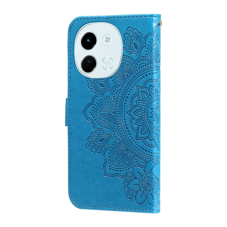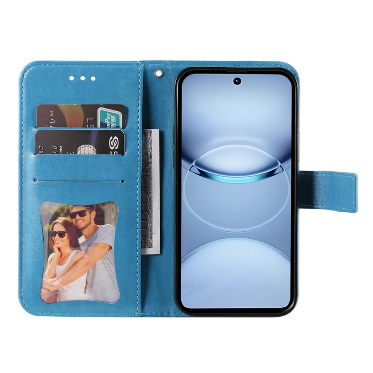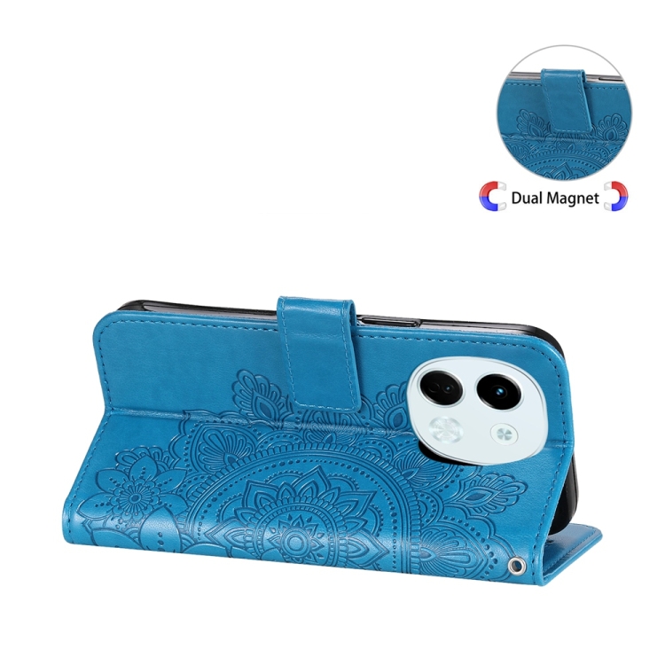 Funda de Cuero con Relieve Flores Siete Pétalos para Tecno Spark 30 5G Pova 6 Neo 5G (Azul)