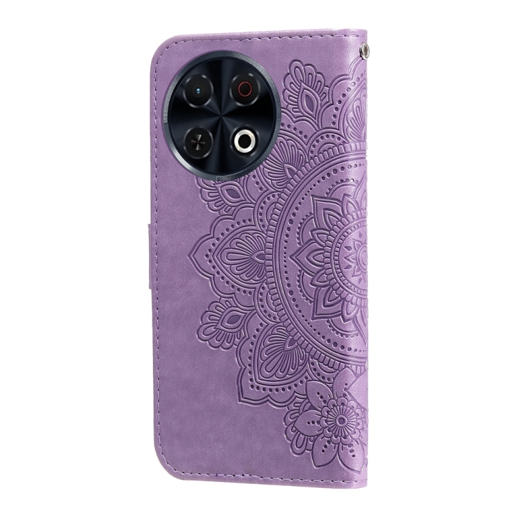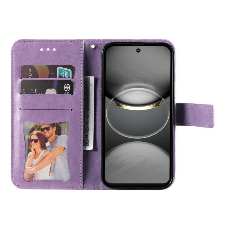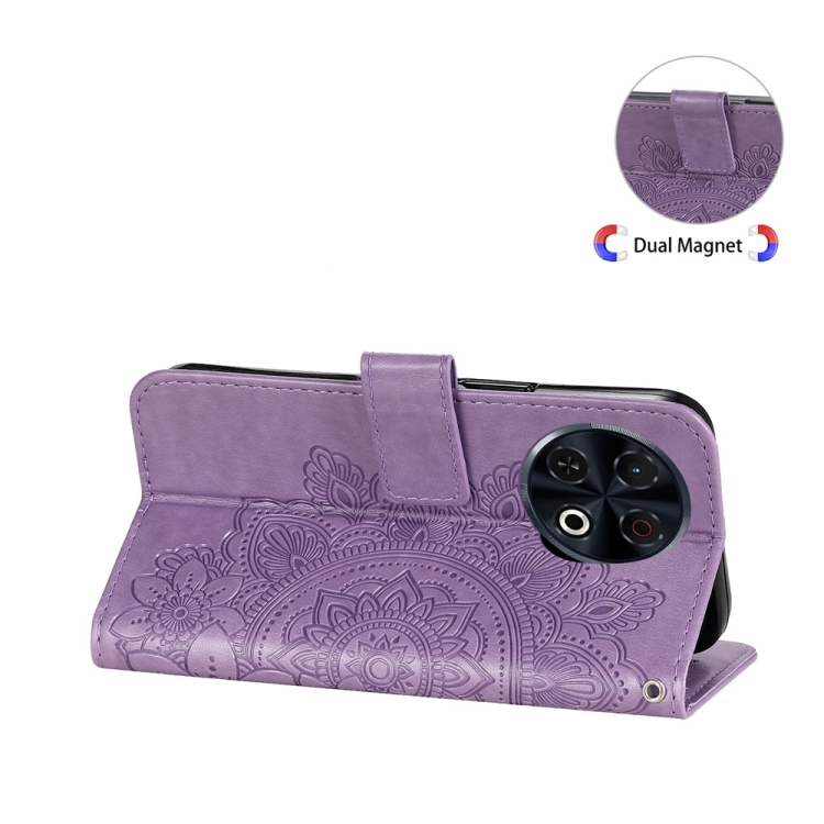 Funda de Cuero con Relieve de Flores de Siete Pétalos para Tecno Spark 30 Pro 4G (Morado Claro)