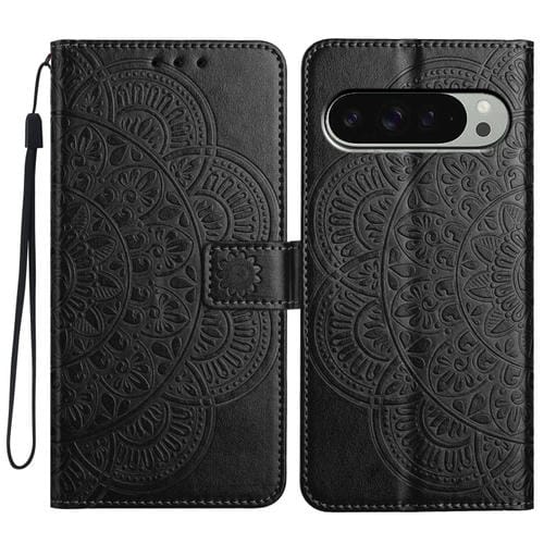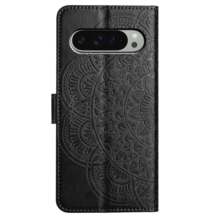 Funda de Cuero con Relieve de Flores para Google Pixel 9 Pro XL (Negra)