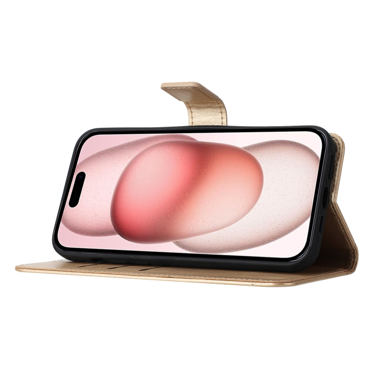 Funda de Piel con Relieve Floral para iPhone 16 Plus (Dorada)