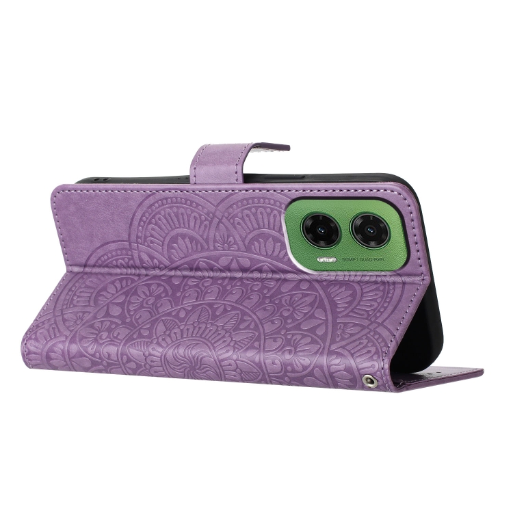 Funda de Cuero con Relieve Floral para Motorola Moto G35 (Morado)