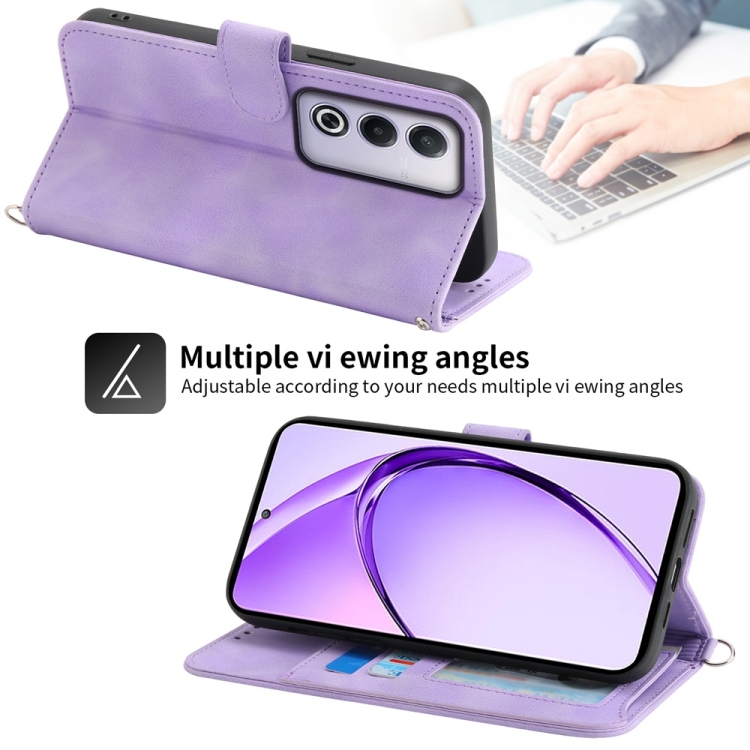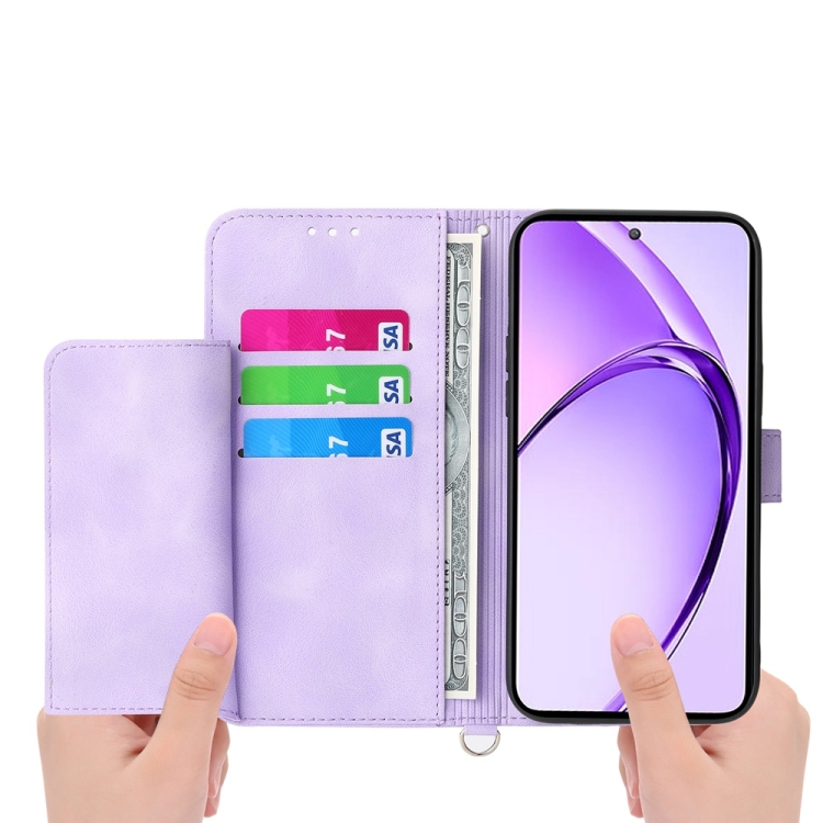 Funda de Cuero con Relieve de Flores para Teléfono Oppo A3 Pro 5G (Morado)