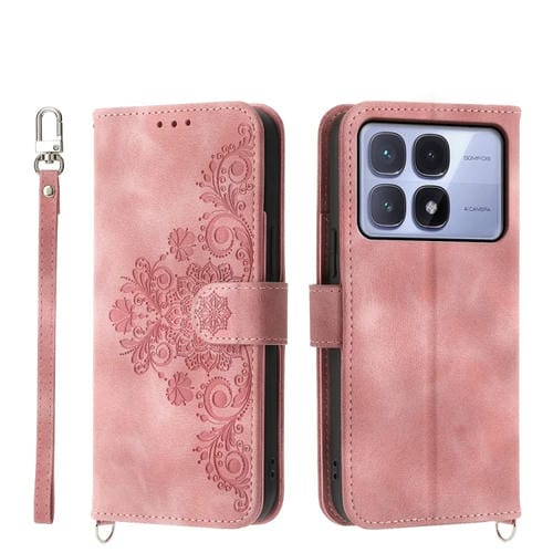 Funda de Cuero con Relieve de Flores y Tacto Agradable para Redmi K70 Ultra (Rosa)