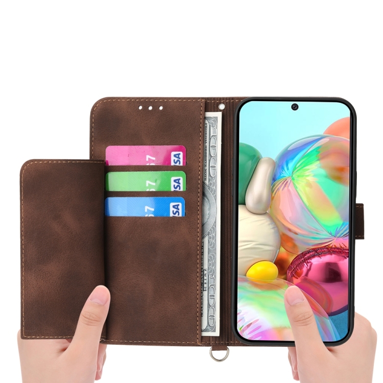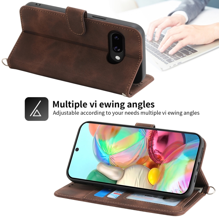 Funda de Cuero con Relieve de Flores para Google Pixel 9A (Marrón)