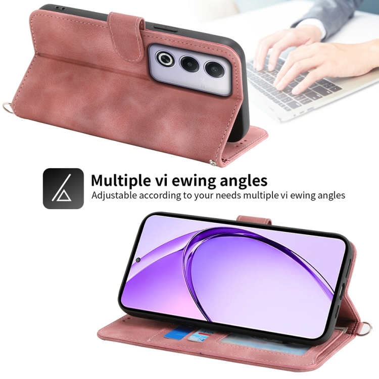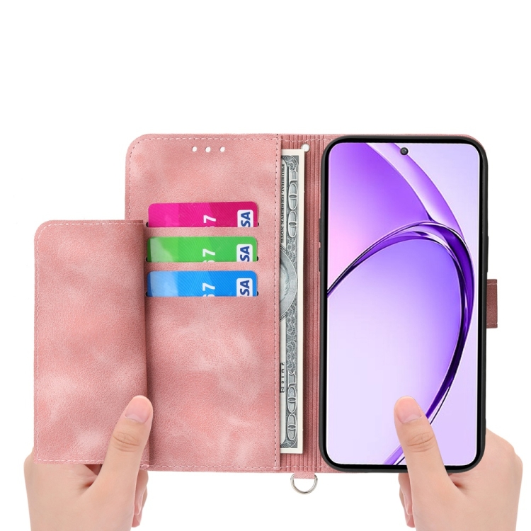 Funda de Cuero con Relieve de Flores y Tacto de Piel para Oppo A3 Pro 5G (Rosa)