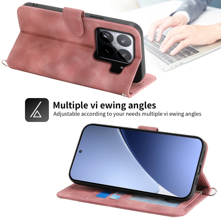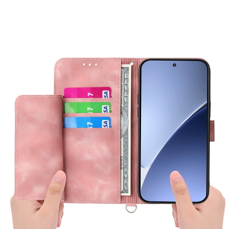 Funda De Cuero Con Relieve De Flores Y Tacto De Piel Para Xiaomi 15 (Rosa)
