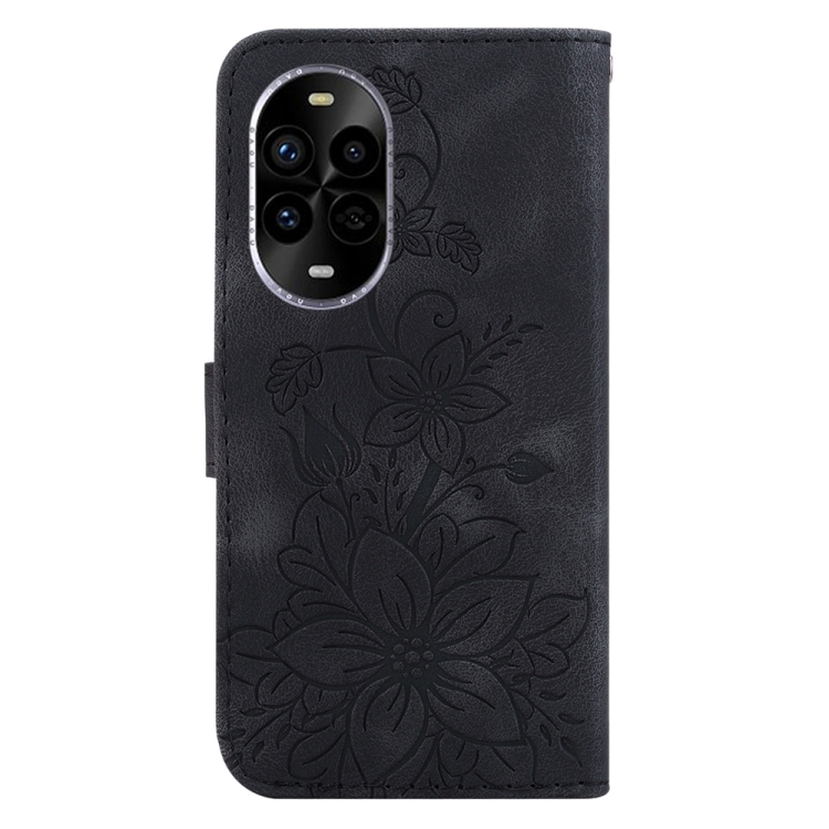 Funda de Cuero con Relieve de Lirio para Huawei Nova 13 Pro (Negra)