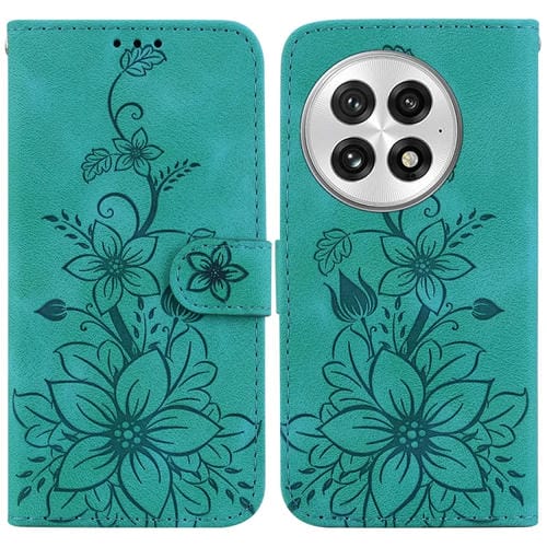 Funda de Cuero con Relieve de Lirio para OnePlus 13 (Verde)
