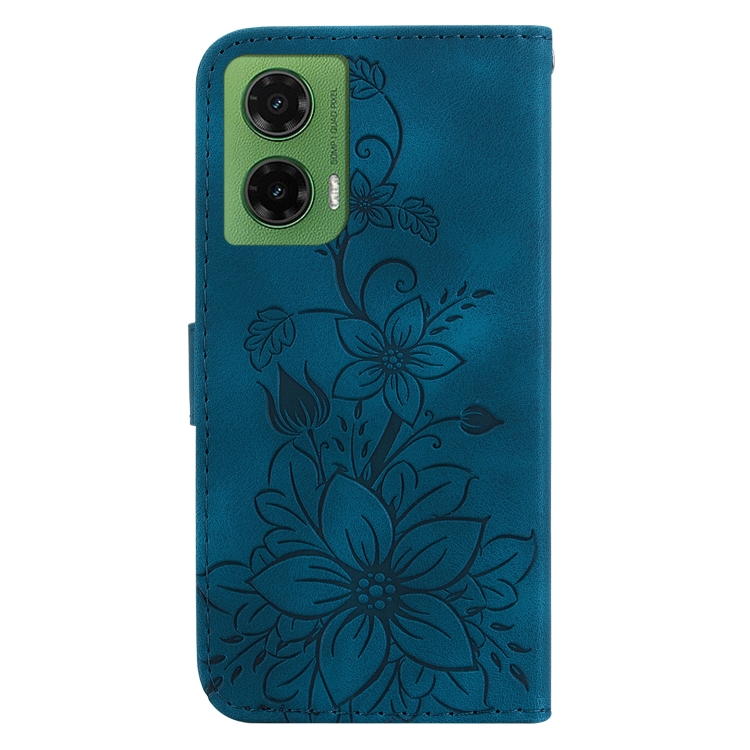 Funda de Cuero con Relieve de Lirios para Motorola Moto G35 (Azul Oscuro)