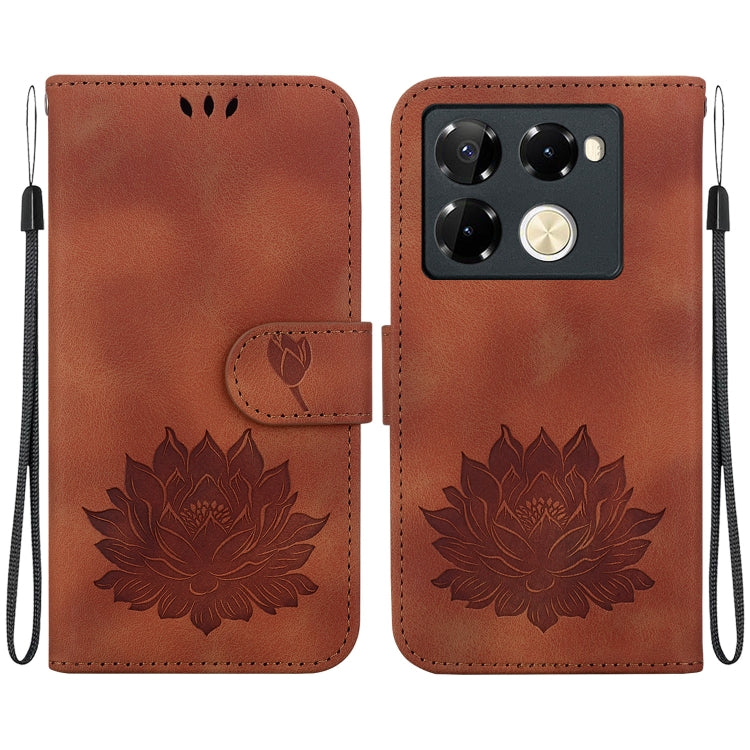 Funda de Cuero con Relieve de Loto para Infinix Note 40 Pro+ (Marrón)