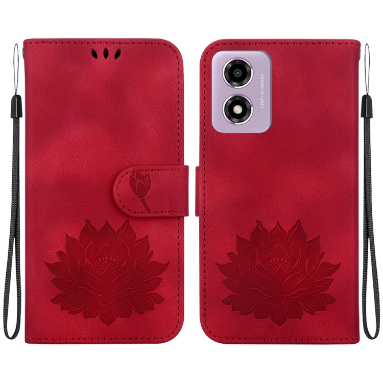 Funda de Cuero con Relieve de Loto para Motorola Moto G04S y Moto E14 (Rojo)