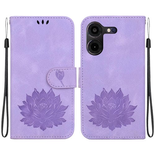 Funda de Cuero con Relieve de Loto para Tecno Pova 5 Pro (Morado)
