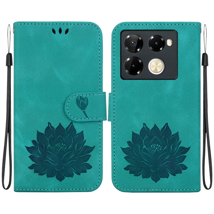 Funda de Cuero con Relieve de Loto para Infinix Note 40 Pro 4G/5G (Verde)