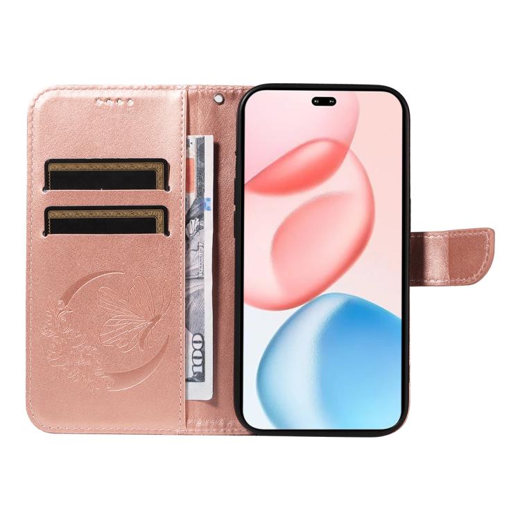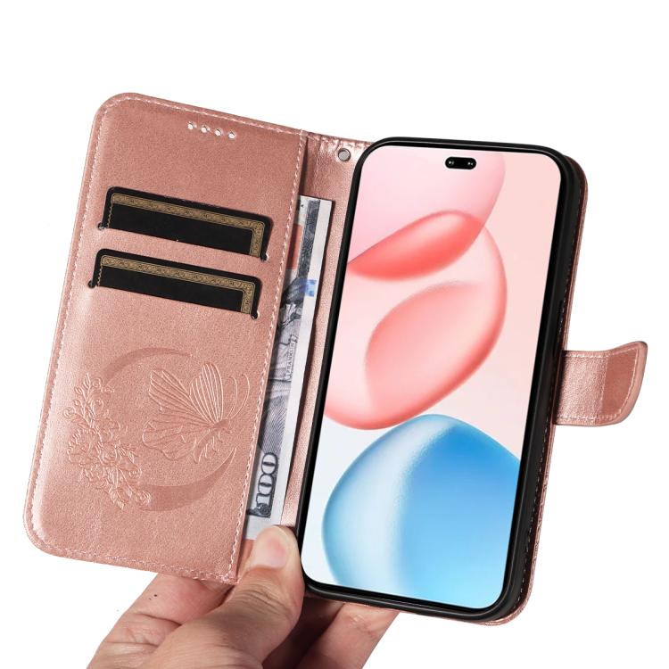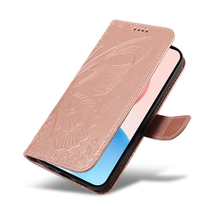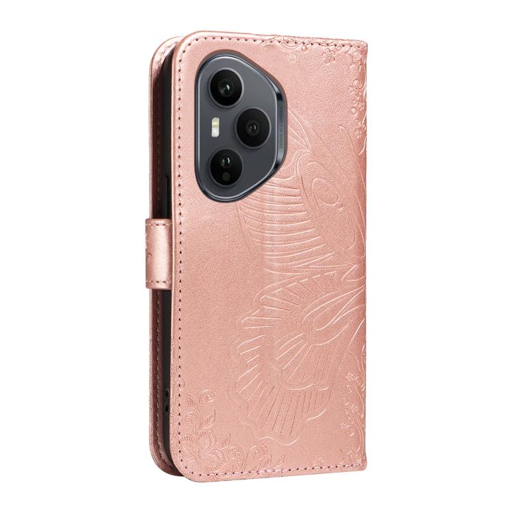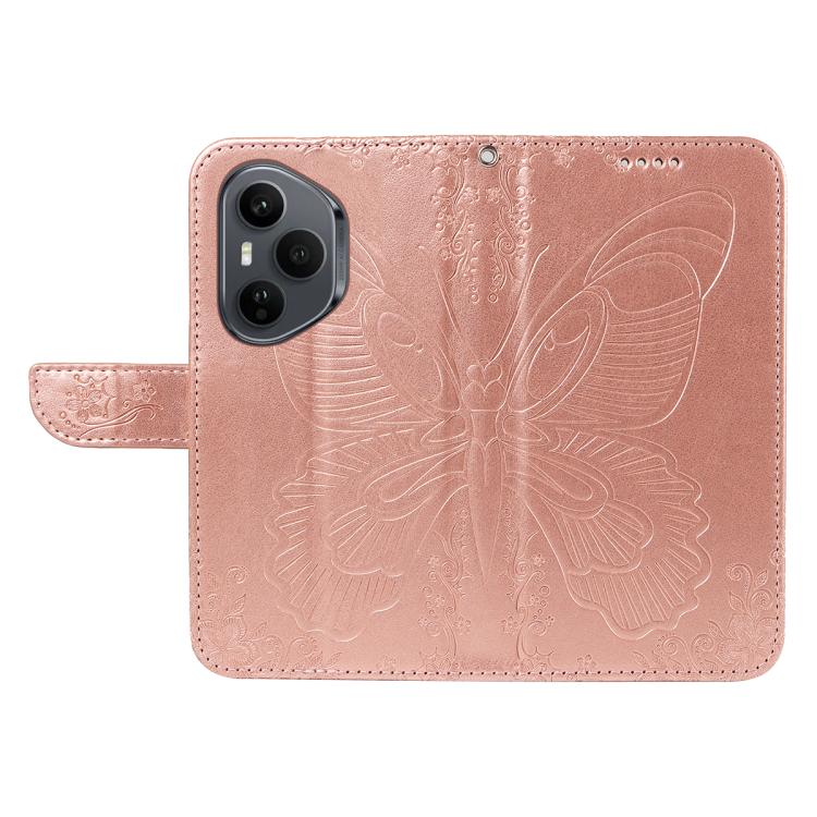 Funda de cuero con relieve de mariposa para Honor 400 Pro Global (160,8 mm) (oro rosa)