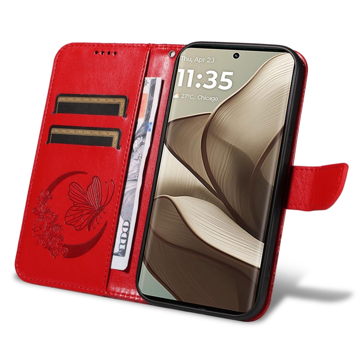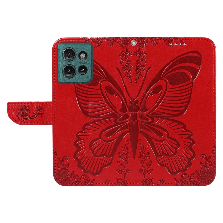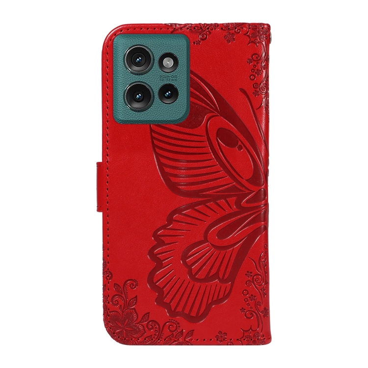 Funda de Cuero con Relieve Mariposa para Motorola Edge 50 5G (Rojo)