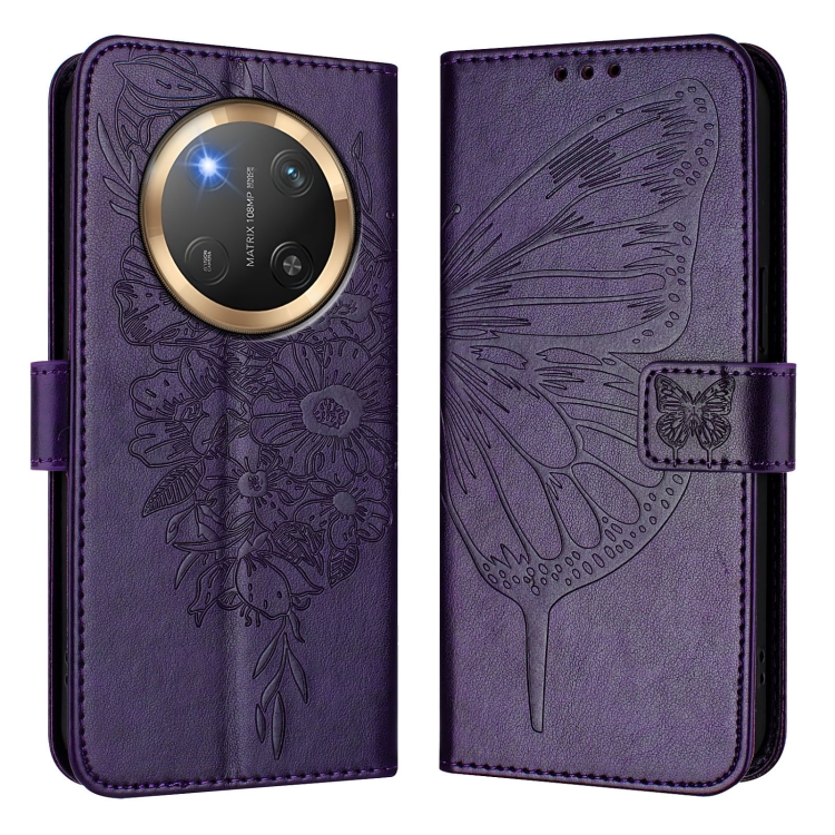 Funda de Cuero con Mariposas en Relieve para Honor X9C 5G (Morado Oscuro)