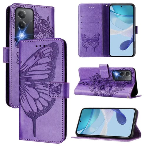 Funda de Cuero con Diseño de Mariposa En Relieve para Oppo K12X 5G (Morado Claro)