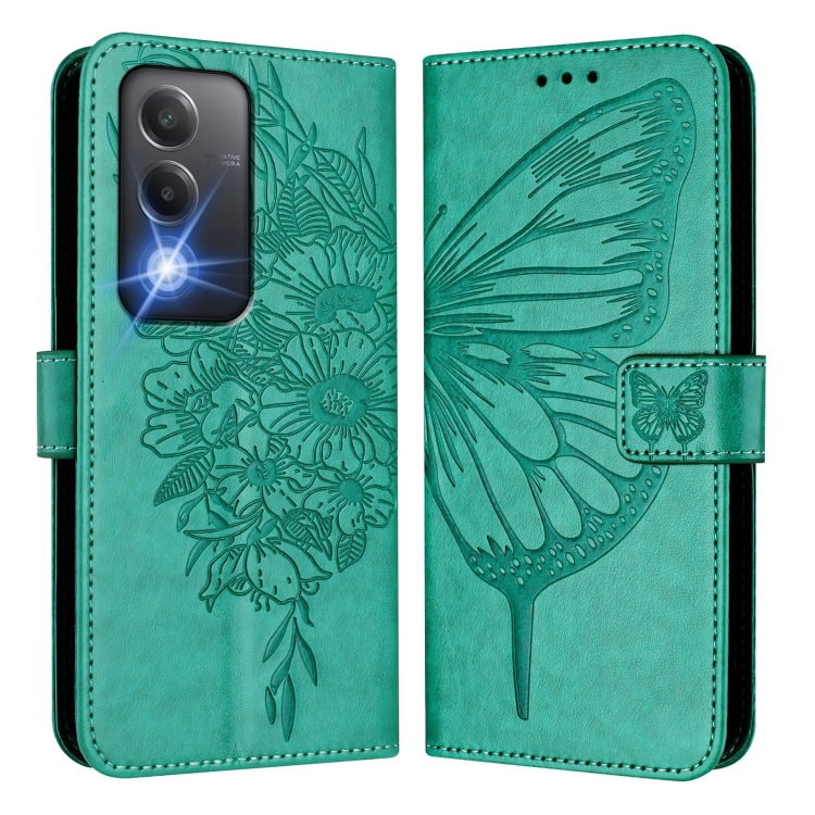 Funda de Cuero con Diseño de Mariposa En Relieve para Oppo K12X 5G (Verde)