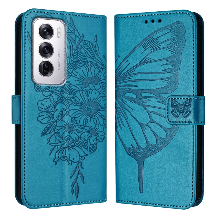 Funda de Cuero con Relieve de Mariposa para Teléfono Oppo Reno12 5G (Azul)