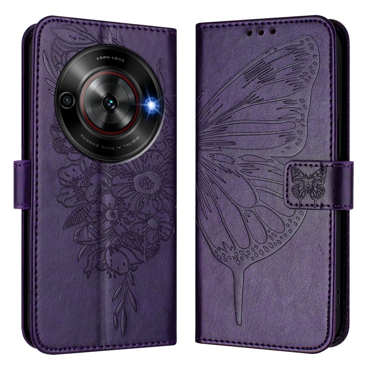 Funda de Cuero con Relieve de Mariposa para ZTE Blade A75 5G Nubia Focus (Morado Oscuro)