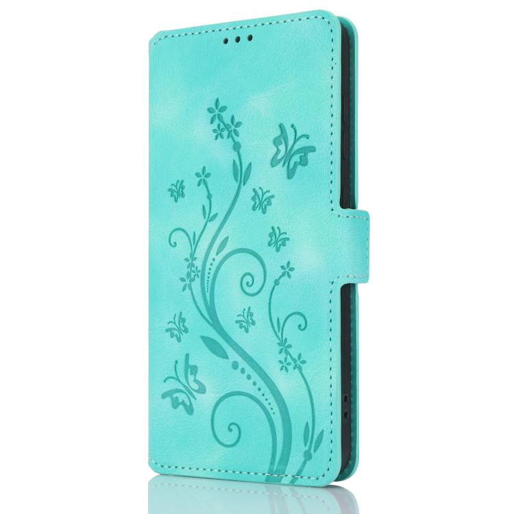 Funda Cuero Samsung Galaxy S21 5G Relieve Mariposa Flor Amor (Verde)