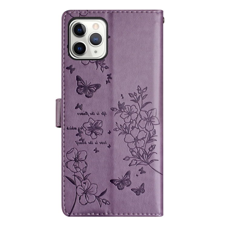 Funda de Cuero iPhone 11 Pro Max Relieve Mariposa y Flor (Morado)