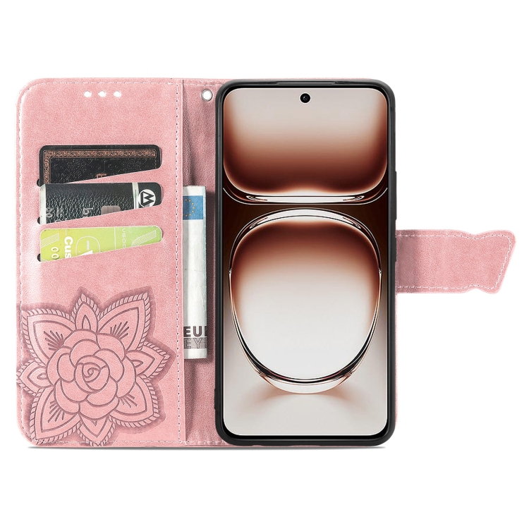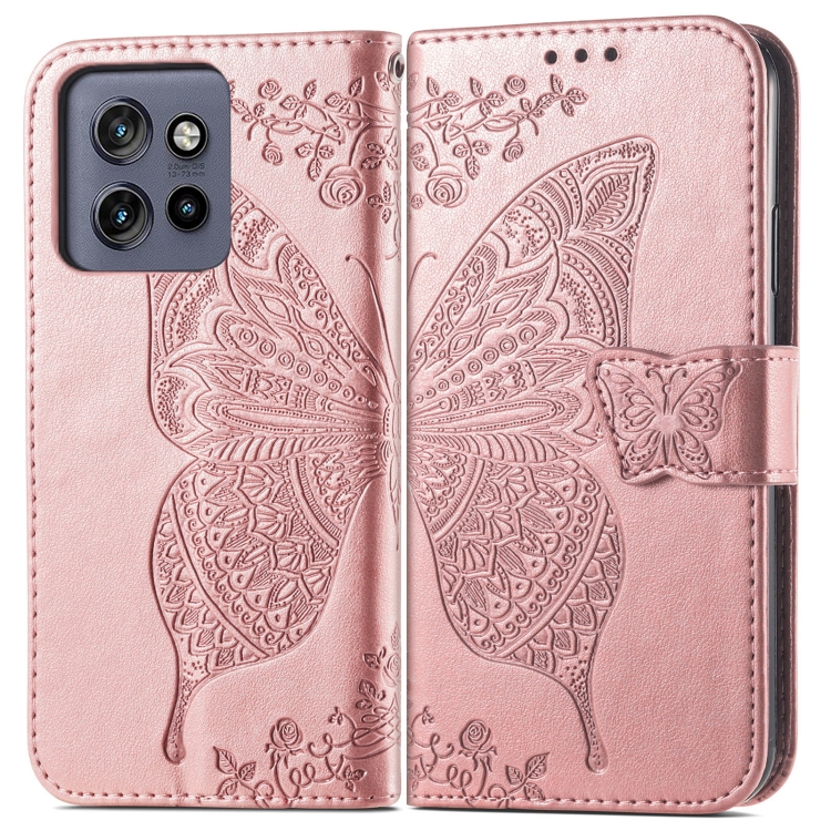 Funda de Cuero con Relieve Mariposa y Flor para Motorola Edge 50 Neo (Rosa)