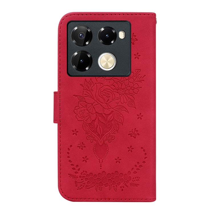 Funda de Cuero con Relieve Mariposa y Rosa para Infinix Note 40 Pro+ (Rojo)