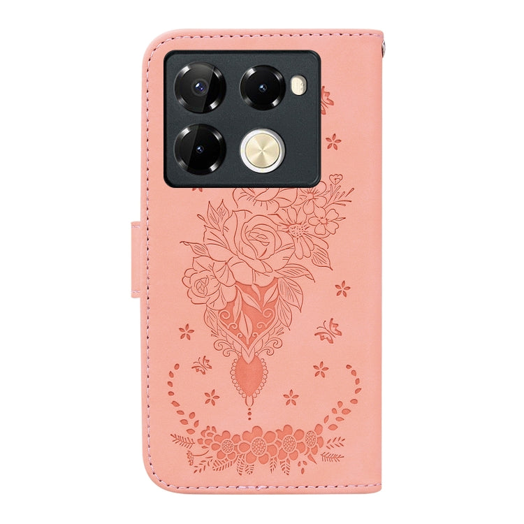 Funda de Cuero con Relieve de Mariposa y Rosa para Infinix Note 40 Pro+ (Rosa)