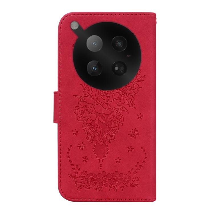 Funda de cuero con relieve de mariposa y rosa para Infinix Zero 40 4G/5G (roja)