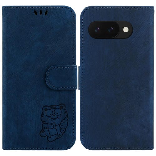 Funda de Cuero con Relieve de Tigre para Google Pixel 9A (Azul Oscuro)