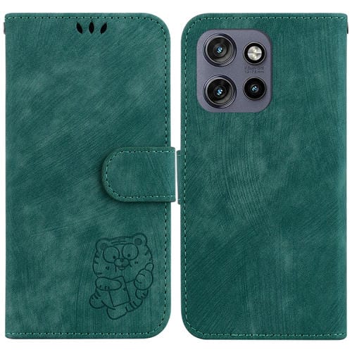 Funda de Cuero con Relieve de Tigre para Motorola Edge 50 Neo 5G Global (Verde)