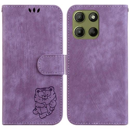 Funda de Cuero con Relieve de Tigre para Motorola Moto G15 (Morado)