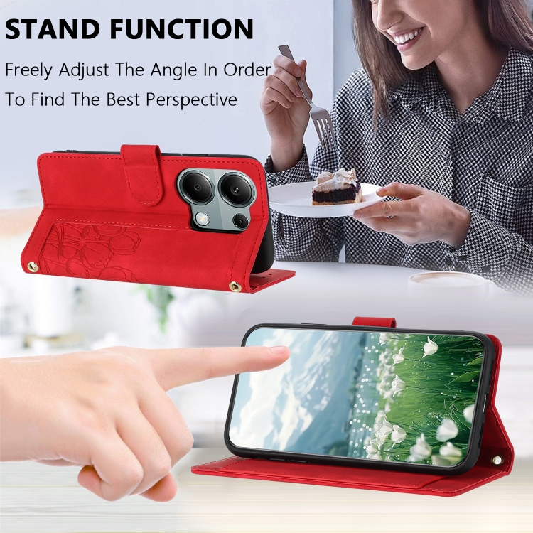 Funda de Cuero con Relieve de Tulipanes para Redmi Note 13 Pro 5G con Cordón (Rojo)