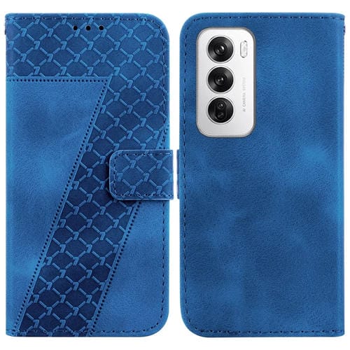 Funda de Cuero con Relieve En Forma de 7 para Oppo Reno12 5G Global (Azul)