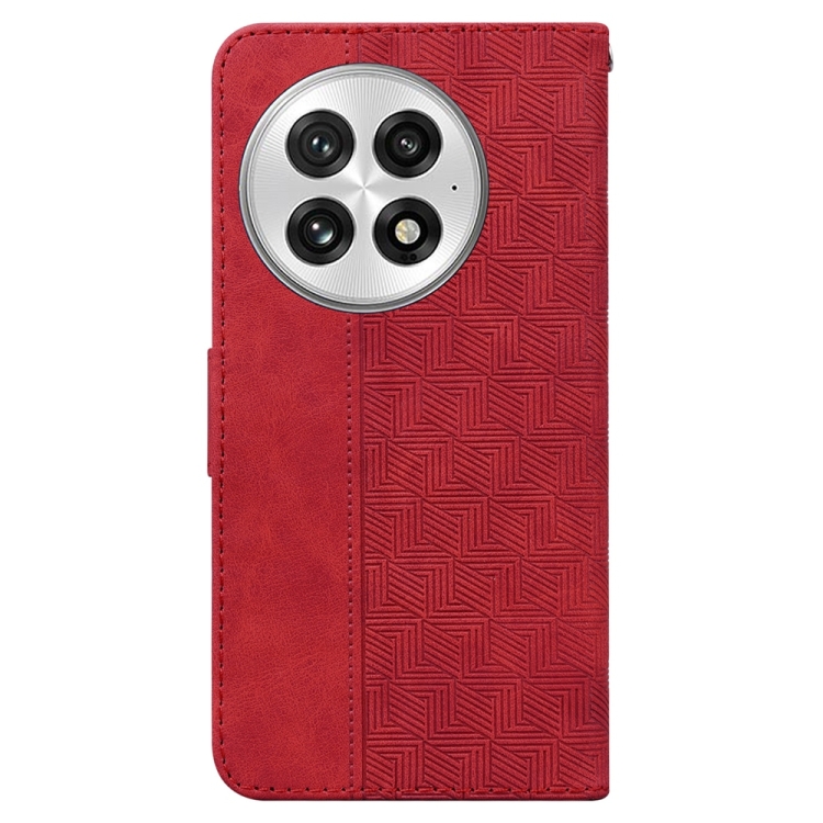 Funda de Cuero con Relieve Geométrico para OnePlus 13 (Rojo)