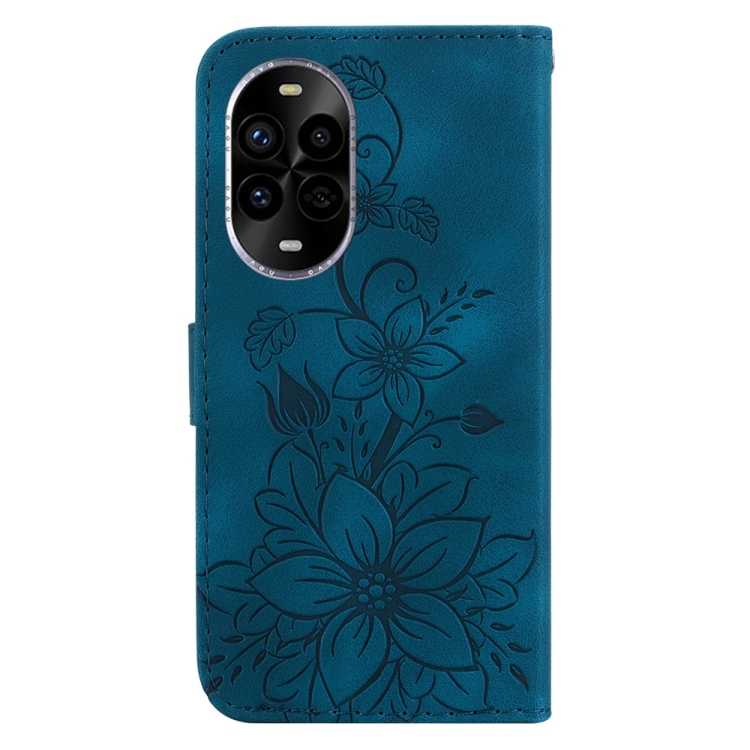 Funda de Cuero con Relieve Lily para Huawei Nova 13 Pro (Azul oscuro)