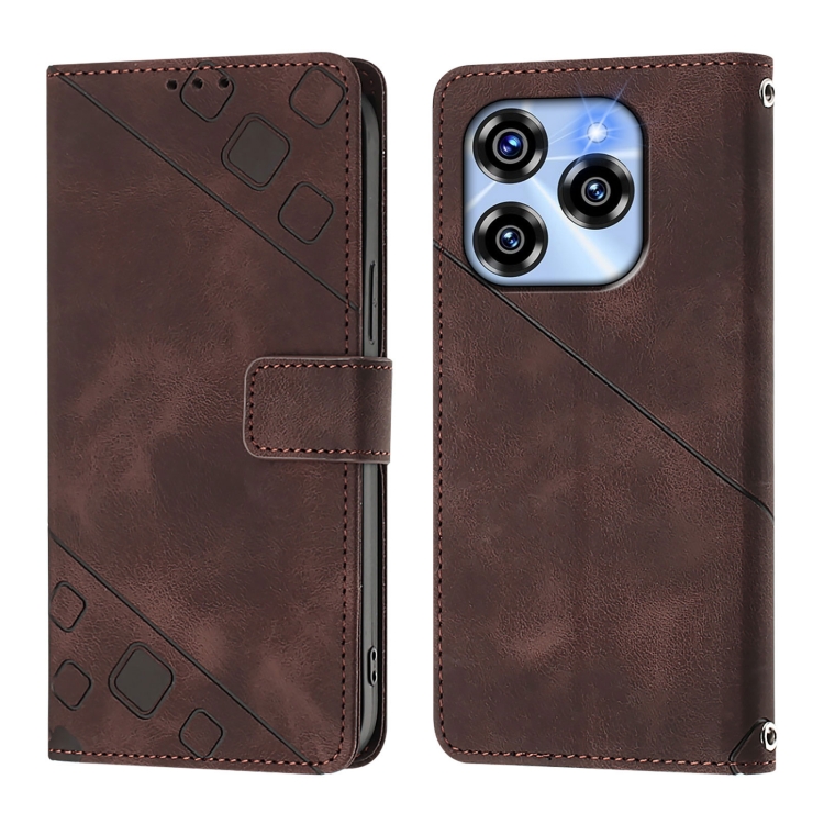 Funda de Cuero con Relieve para Teléfono Oukitel C50 (Marrón)