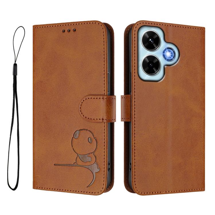 Funda de cuero con relieve RFID y cordón para Redmi Note 13 4G (marrón)