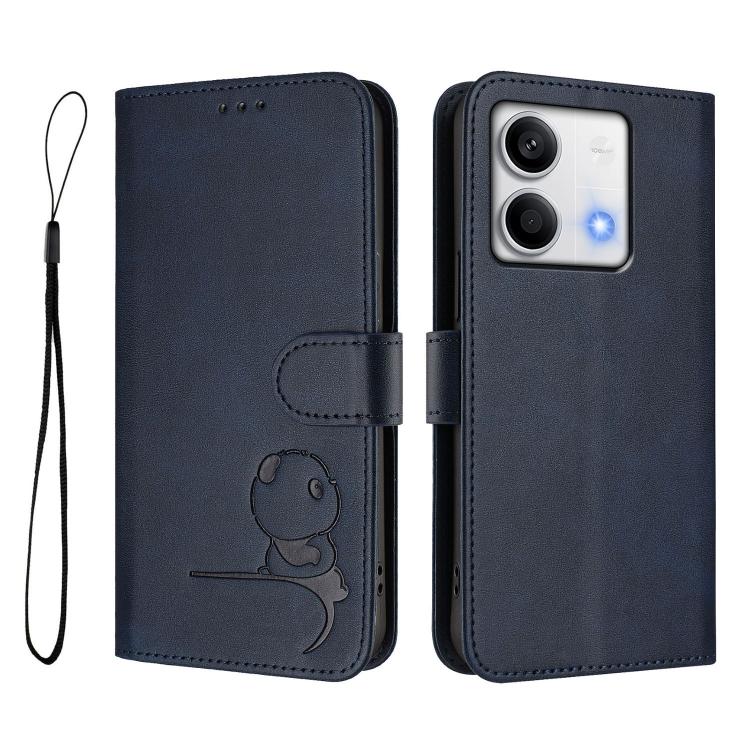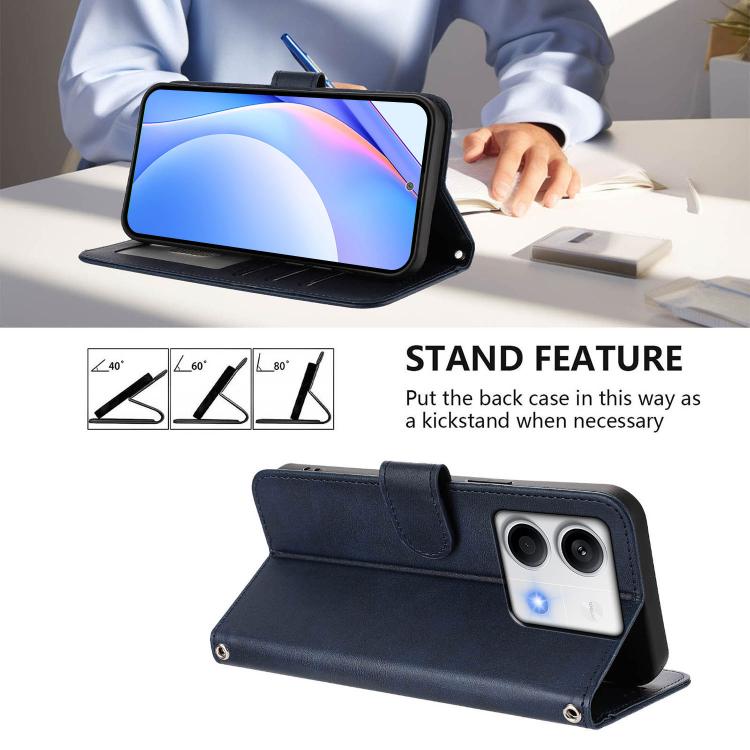 Funda de cuero con relieve RFID y cordón para Redmi Note 13 5G (azul)