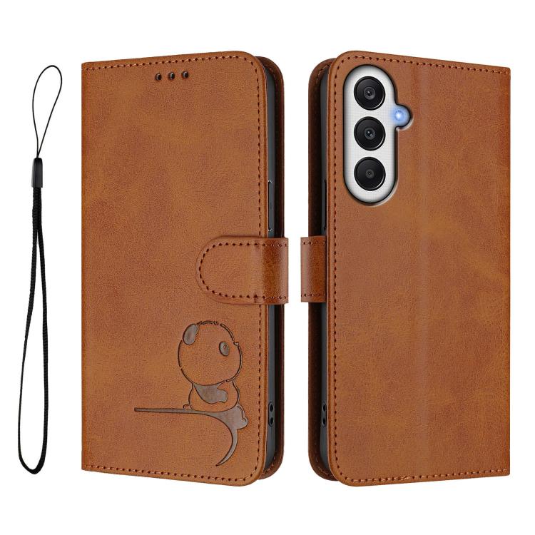 Funda de cuero con relieve RFID y cordón para Samsung Galaxy A05s 4G / F14 4G (marrón)