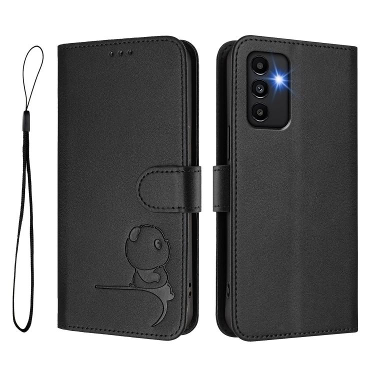 Funda de cuero con relieve RFID y cordón para Samsung Galaxy A13 5G/4G (negro)