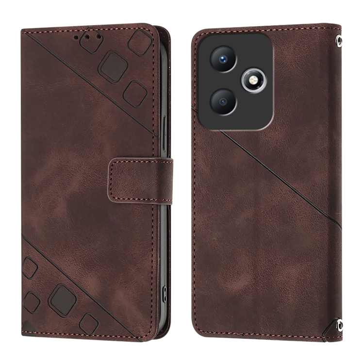 Funda de Cuero con Relieve y Tacto de Piel para Infinix Hot 30 Play / Hot 30 Play Nfc (Marrón)
