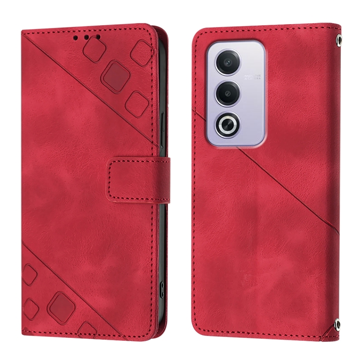 Funda de Cuero con Relieve y Tacto de Piel para Oppo A3 Pro 5G (Rojo)