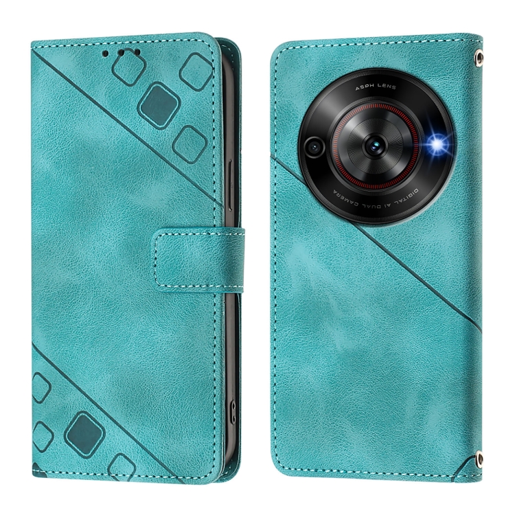 Funda de Cuero con Relieve y Tacto de Piel para ZTE Blade A75 5G y Nubia Focus 5G (Verde)