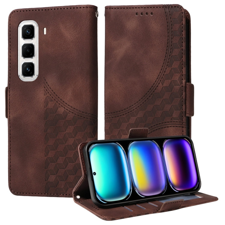 Funda de Cuero con Rombos y Estrellas para Infinix Hot 50 Pro+ 4G (Marrón)