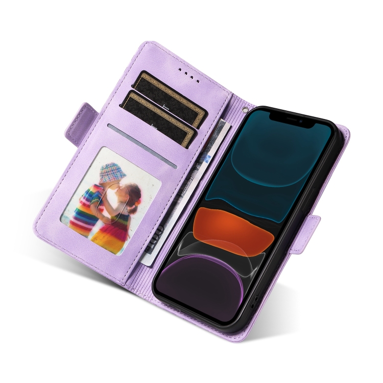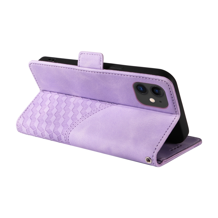 Funda de Cuero para iPhone 11 con Rombos en Relieve y Estrellas (Morado)